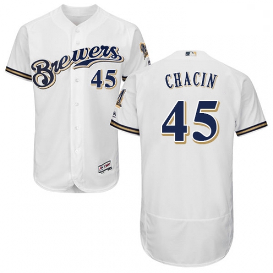 - Mens Majestic Milwaukee Brewers 45 Jhoulys Chacin Replica White Home Cool Base MLB Jersey