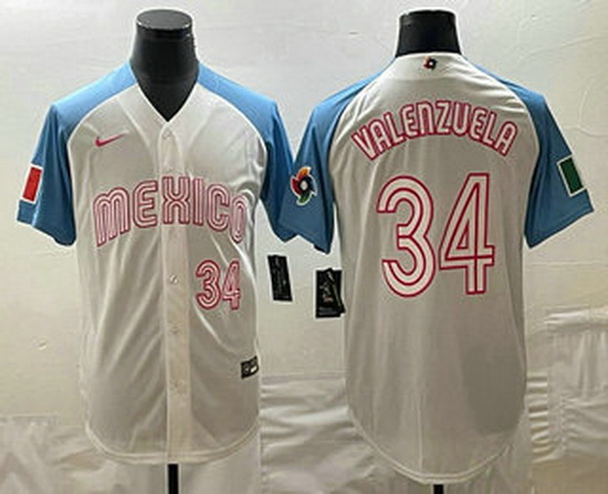 - Men Mexico Baseball Blank 2023 White Blue World Baseball Classic Stitched Jersey