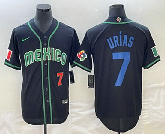 - Men's Mexico Baseball #7 Julio Urias 2023 Black World Baseball Classic Stitched Jerseys 4