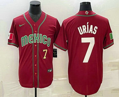 - Men's Mexico Baseball #7 Julio Urias 2023 Red Green World Baseball Classic Stitched Jerseys