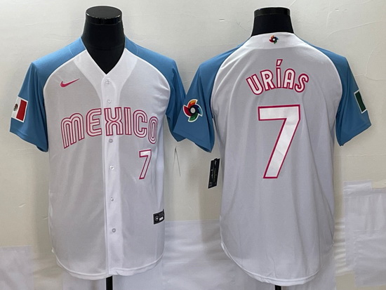 - Men Mexico Baseball #7 Julio Urias Number 2023 White World Baseball Classic Stitched Jersey1