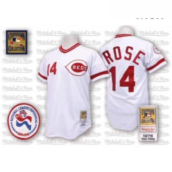 - Men Cincinnati Reds 14 Pete Rose White 1976 Throwback Jersey
