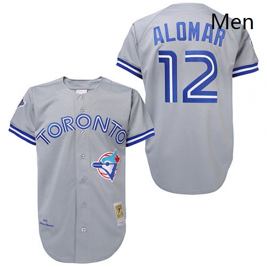 - Mens Mitchell and Ness Toronto Blue Jays 12 Roberto Alomar Replica Grey Throwback MLB Jersey
