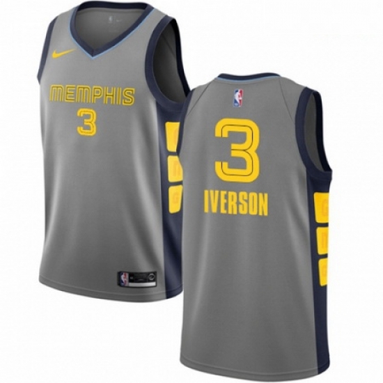 - Mens Nike Memphis Grizzlies 3 Allen Iverson Swingman White NBA Jersey City Edition