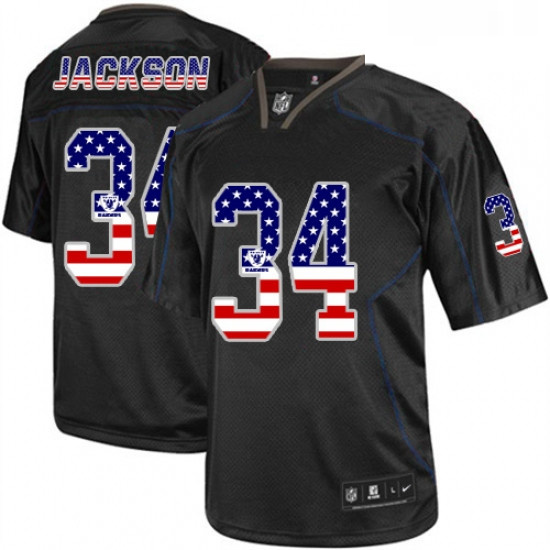 - Mens Nike Oakland Raiders 34 Bo Jackson Elite Black Home USA Flag Fashion NFL Jersey