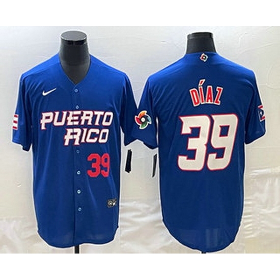 - Men's Puerto Rico Baseball #39 Edwin Diaz 2023 Blue World Baseball Classic Stitched Jersey