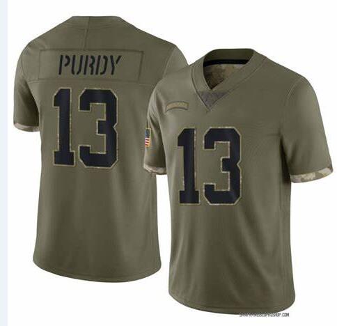 - Men San Francisco 49ers #13 Brock Purdy White Throwback Stitched Jersey