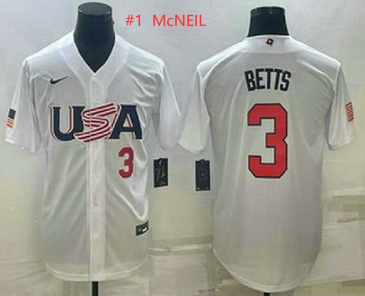 - Men USA Baseball #1 Jeff McNeil Number 2023 White World Classic Stitched Jerseys