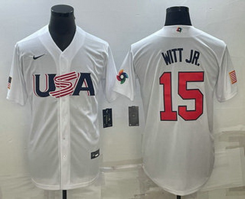 - Men USA Baseball #15 Bobby Witt Jr 2023 Red World Baseball Classic Stitched Jersey