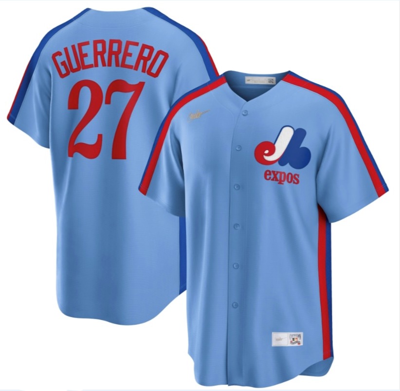 - Men Montreal Expos 27 Vladimir Guerrero Navy Cooperstown Collection Stitched MLB Jersey
