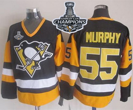 - Mitchell 26Ness Penguins #35 Tom Barrasso Black 2017 Stanley Cup Final Patch Stitched NHL Jersey