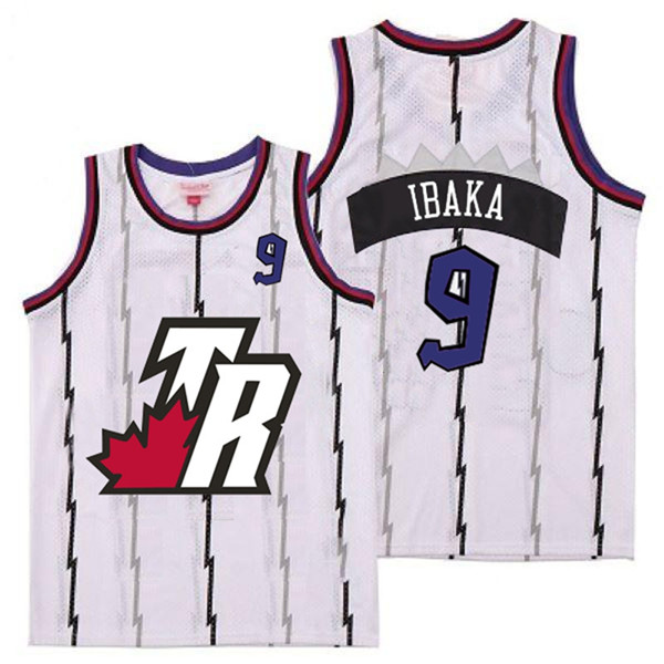- Raptors 9 Serge Ibaka White Gray Logo Retro Jersey