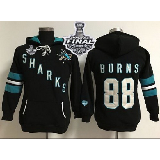 - San Jose Sharks 88 Brent Burns Black Women Old Time Heidi Hoodie NHL Hoodie