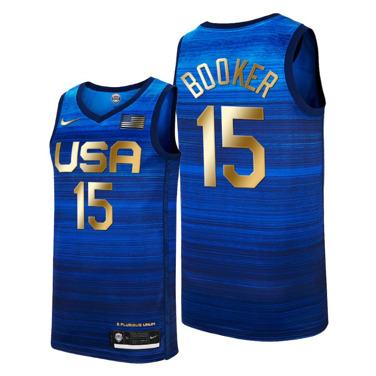 - USA Dream Team 15 Devin Booker 2021 Tokyo Olymipcs Nike Basketball Jersey Blue