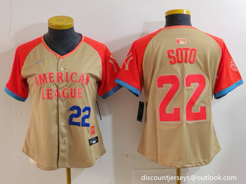 - Women American League 22 Juan Soto Cream 2024 All Star Limited Stitched Baseball Jersey
