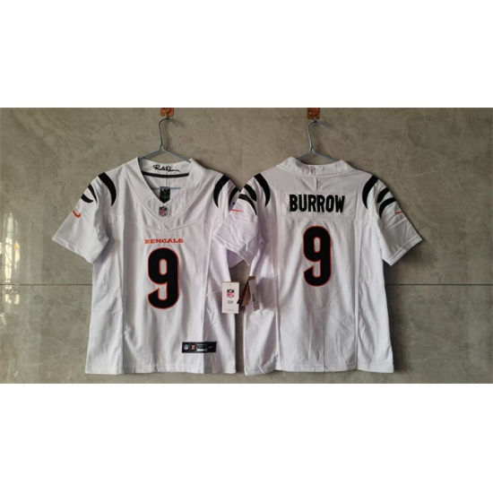 - Women Cincinnati Bengals 9 Joe Burrow White F U S E Stitched Vapor Football Jersey