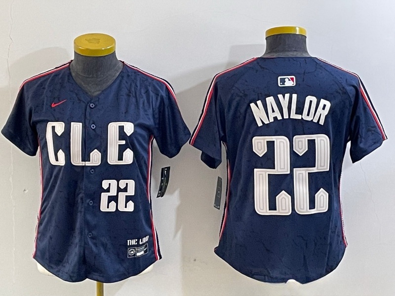 - Women Cleveland Guardians 22 Josh Naylor Navy 2024 City Connect Limited Stitched jerseys 5