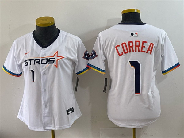 - Women Houston Astros 1 Carlos Correa Orange Cool Base Stitched Jersey