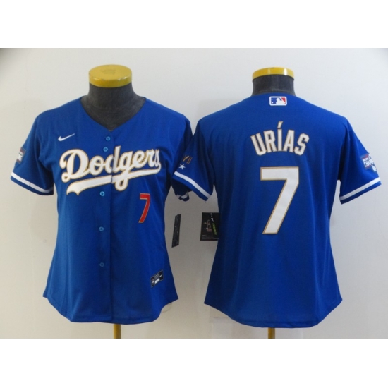 - Women Los Angeles Dodgers 7 Julio Urias Royal 2020 World Series Champions Replica Jersey