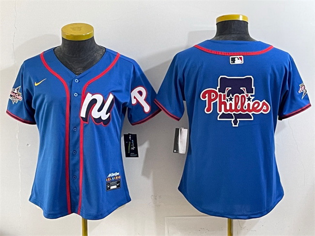 Home>MLB>MLB 2025 All Star>Women Jerseys>Women National League Philadelphia Phillies Team Big Logo Blue 2025 All Star Edition Limited Stitched Baseball Jersey
