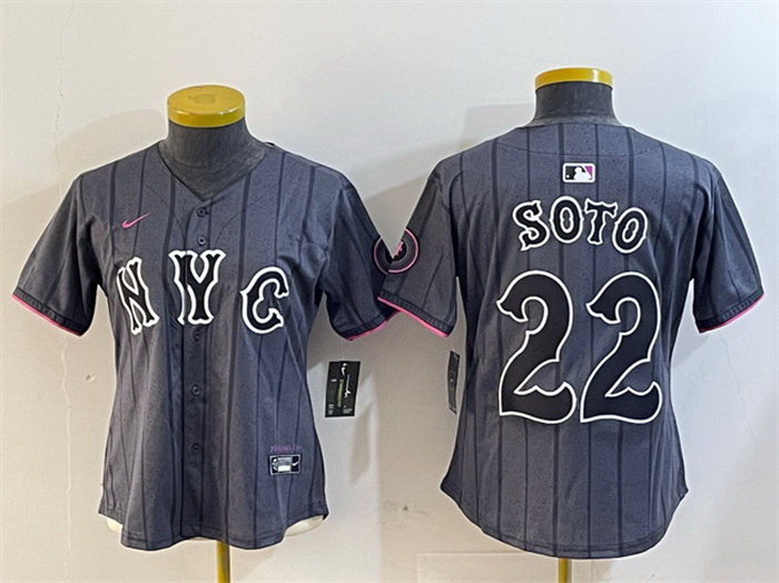 - Women New York Mets Graphite 2024 City Connect Limited Stitched Baseball Jersey 1