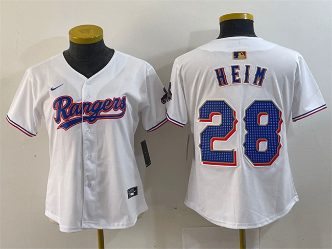- Women Texas Rangers 28 Jonah Heim White Gold Cool Base Stitched Baseball Jersey