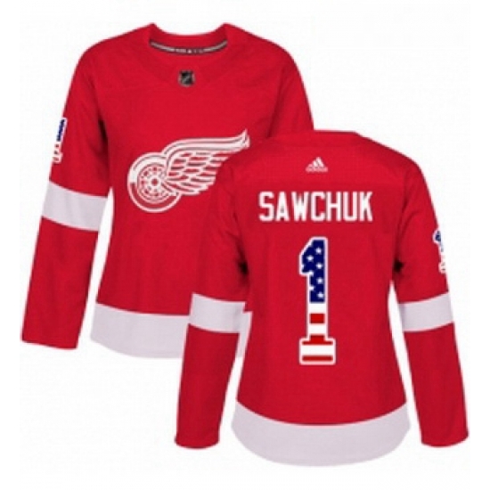 - Womens Adidas Detroit Red Wings 34 Petr Mrazek Authentic Red USA Flag Fashion NHL Jersey