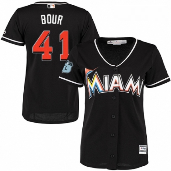 - Womens Majestic Miami Marlins 11 J T Realmuto Replica Black Alternate 2 Cool Base MLB Jersey