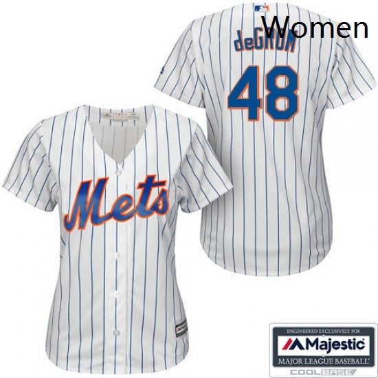 - Womens Majestic New York Mets 48 Jacob deGrom Replica WhiteBlue Strip MLB Jersey