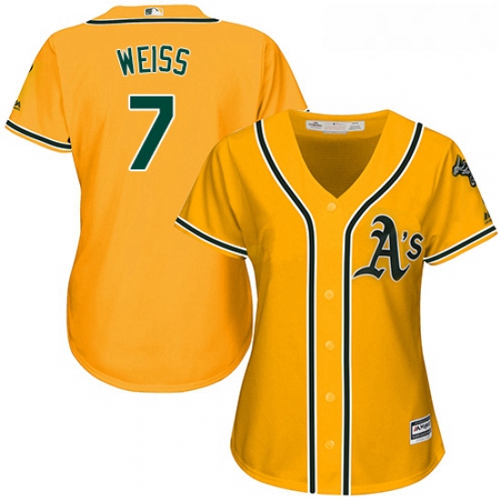 - Womens Majestic Oakland Athletics 7 Walt Weiss Authentic Gold Alternate 2 Cool Base MLB Jersey