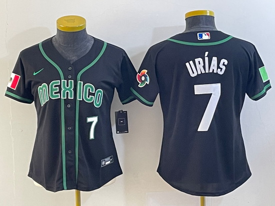 - Women's Mexico Baseball #7 Julio Urias Number 2023 Black World Classic Stitched Jersey6