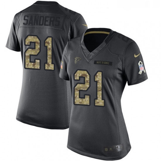 - Nike Falcons #21 Deion Sanders Camo Women Stitched NFL Limited 2018 Salute to Service Jersey
