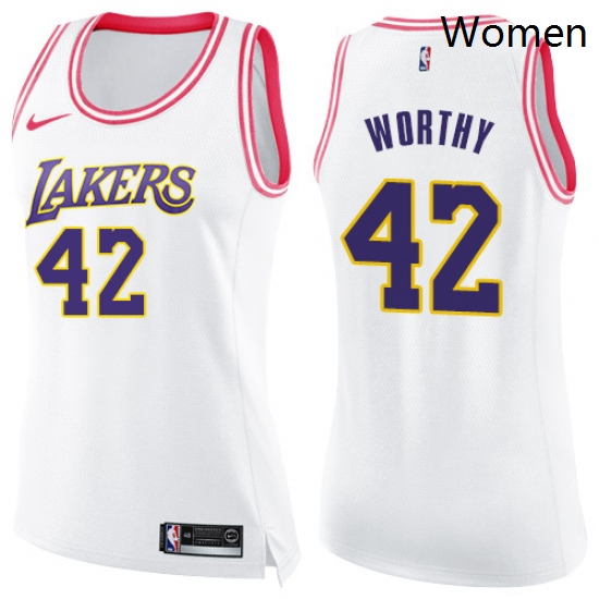 - Womens Nike Los Angeles Lakers 5 Robert Horry Swingman WhitePink Fashion NBA Jersey