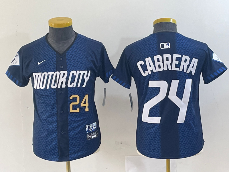 - Youth Majestic Detroit Tigers 24 Miguel Cabrera Replica Navy Blue Cool Base MLB Jersey