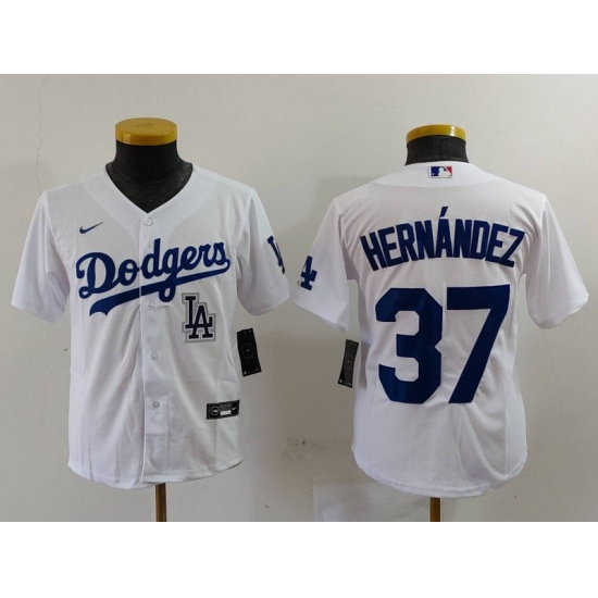 - Youth Los Angeles Dodgers 37 Teoscar Hernandez White Stitched Baseball Jersey 1