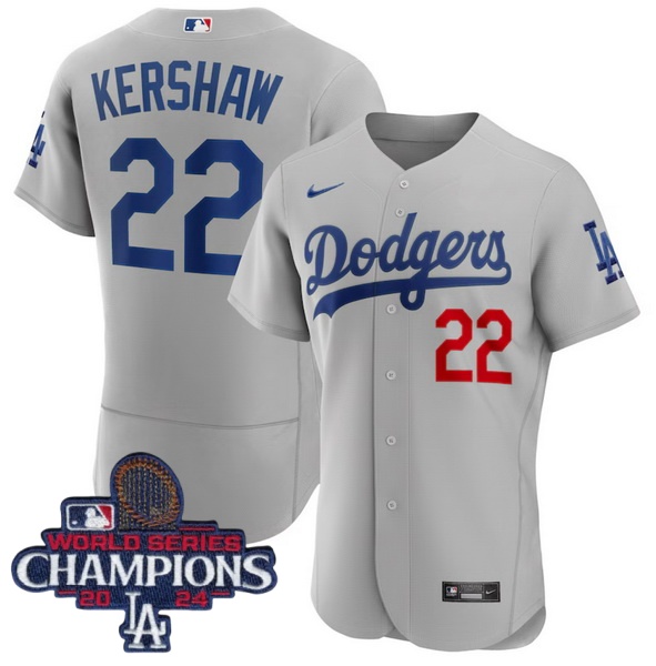 Home>MLB>2024 World Series Champions>Youth>Youth Nike Los Angeles Dodgers Clayton Kershaw #22 Gray Flex Base 2024 World Series Champions Stitched MLB Jersey