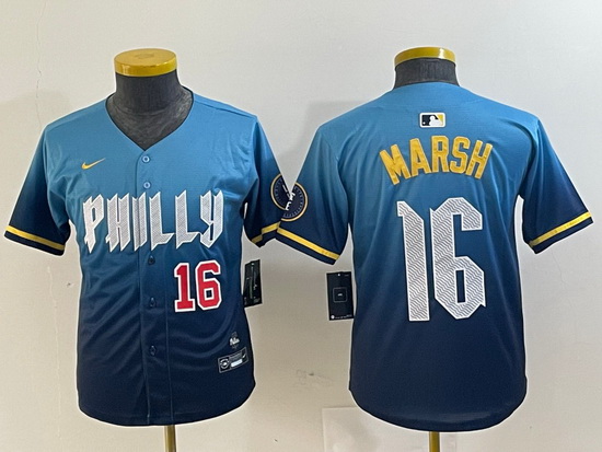 - Youth Philadelphia Phillies 16 Brandon Marsh White Cool Base Stitched Baseball Jersey 2