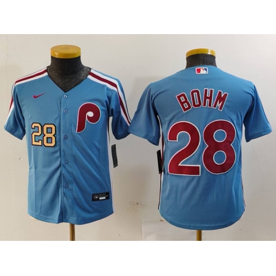 - Youth Philadelphia Phillies 18 Johan Rojas Blue 2024 City Connect Limited Stitched jerseys 1