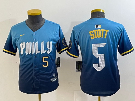- Youth Philadelphia Phillies Team Big Logo Blue Cool Base Stitched Baseball Jersey 5