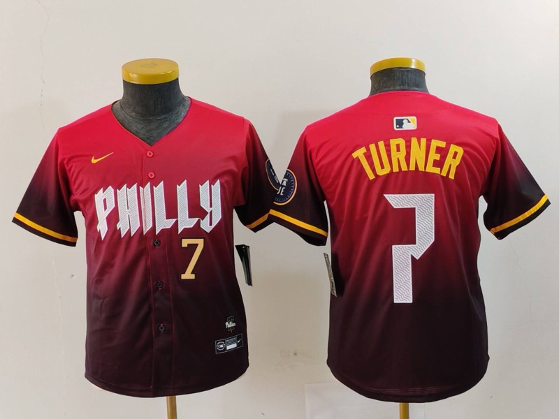 - Youth Philadelphia Phillies 7 Trea Turner Red Cool Base Stitched Baseball Jersey