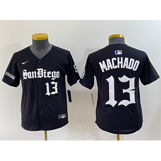 - Youth San Diego Padres 13 Manny Machado Black Mexico Cool Base Stitched Baseball Jersey