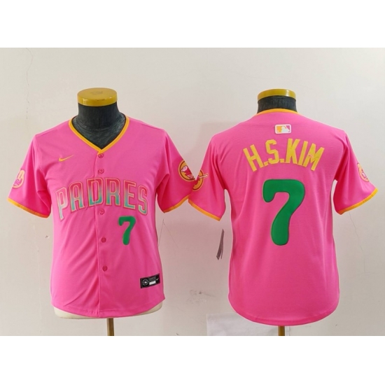 - Youth San Diego Padres 7 Ha Seong Kim White City Connect Stitched Baseball Jersey 2