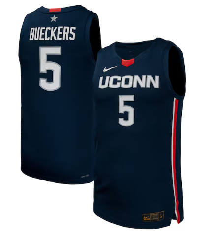 - Men UConn Huskies #5 Paige Bueckers Navy White Stitched Basketball Jersey